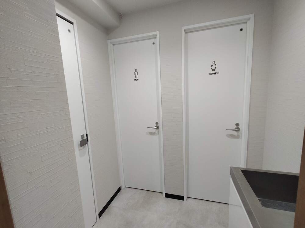 明るく清潔なトイレや手洗い場も共有スペースにあり、男女別に分かれているのもうれしいポイントです。