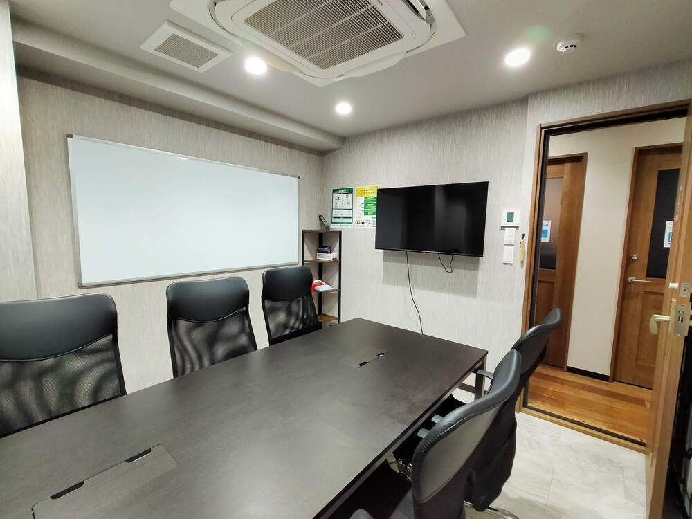 会議室には大型モニターとホワイトボードが完備されており、ビジネスミーティングにも最適です。