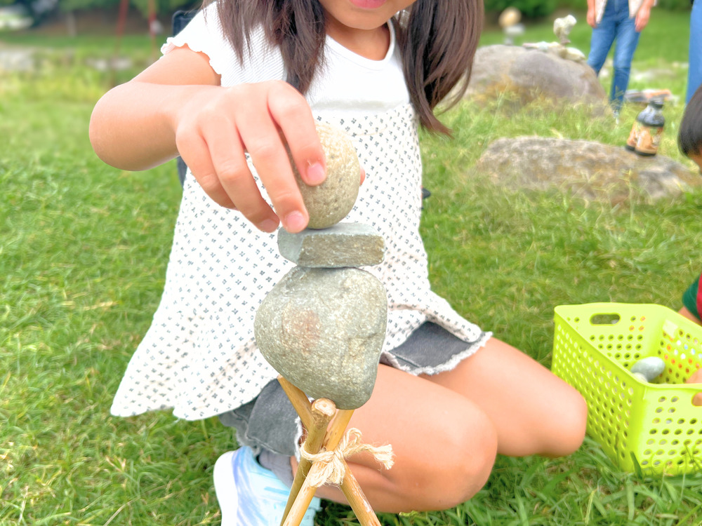 石の上に石を立てるなんて無理……と思うかもしれませんが、子どもたちは常識にとらわれず、大人より上手に積んじゃいます(笑)。