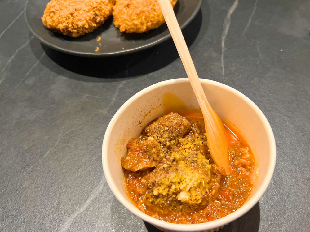 用賀の住宅街にあるカリフォルニア風グリル&ダイニング。和牛たっぷりの「特製コロッケ」と「和牛すじ煮込み」はイベント限定。