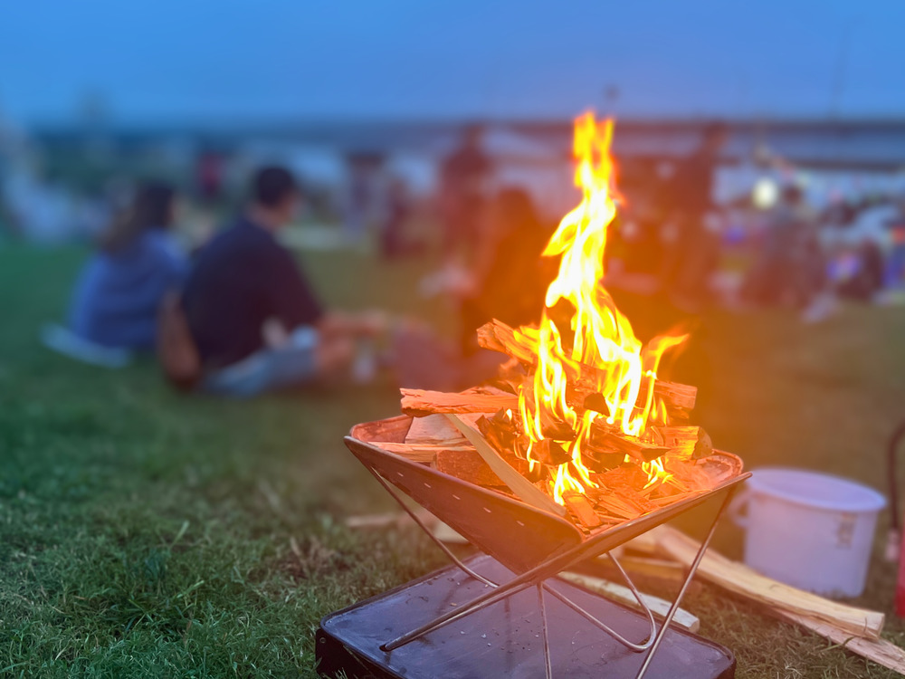 焚火を囲む時間は格別。特別な許可を得てイベント事務局が実施しているのだそう。
