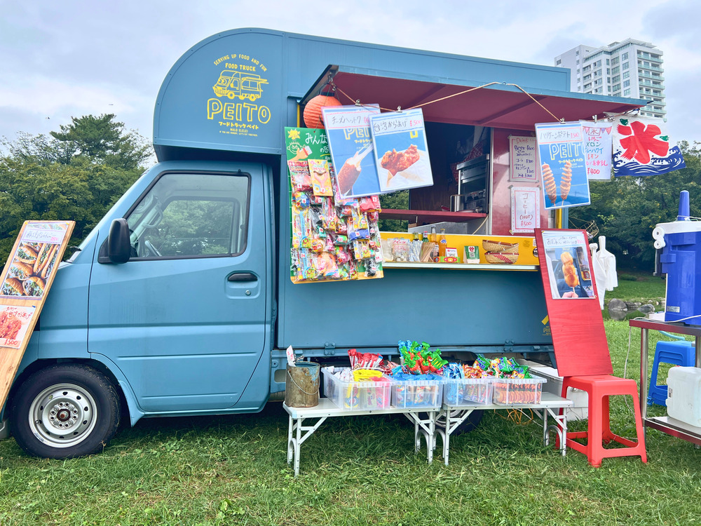 川風が心地よい河川敷にはフードトラックやテントが並び、歩くだけでワクワク♪