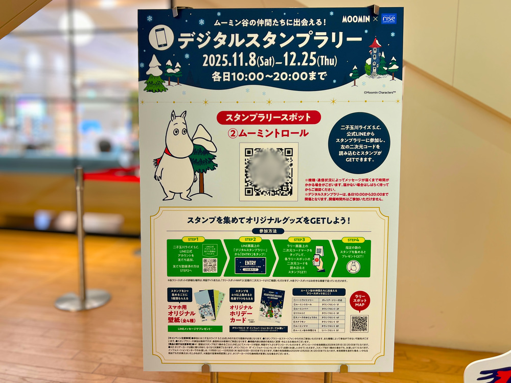 こちらのデジタルスタンプラリーは、二子玉川ライズ S.C.館内を含む全8カ所に設置されていて、二次元コードを読み込んでスタンプをゲット。
