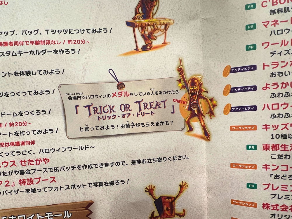 会場内でメダルをつけた人を見かけたら、ぜひ勇気を出して「トリック・オア・トリート」と言ってみましょう!