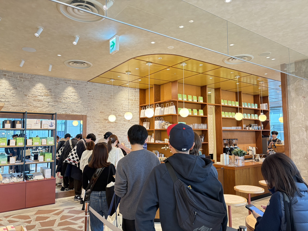イートインの店内はとてもにぎわっていて、奥のソファー席まで満席と人気ぶりがうかがえました。店内は満席で入れなかったので、比較的空いていたテイクアウトのレーンに並ぶことにしました。