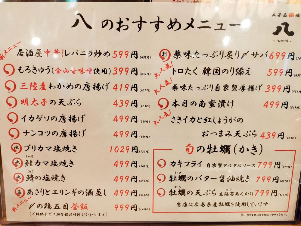 訪れた日の特別メニューも「八」の楽しみ方のひとつですので、ホワイトボードを探してみて下さいね。