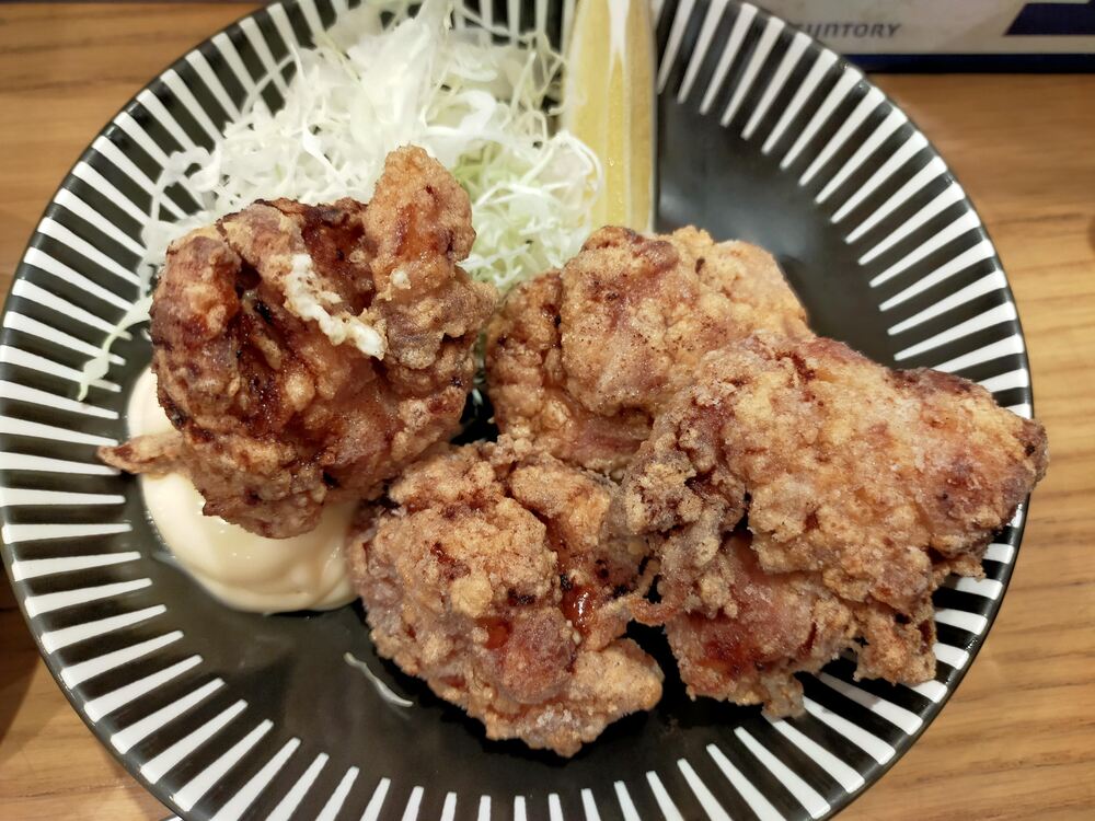 「鶏のから揚げ」はゴロっと大きなサイズの鶏肉が4個入り、外はカリカリ、中はジューシー。