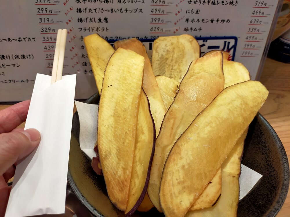「揚げたて!さつまいもチップス」は、見た目の大きさにも驚きます。
