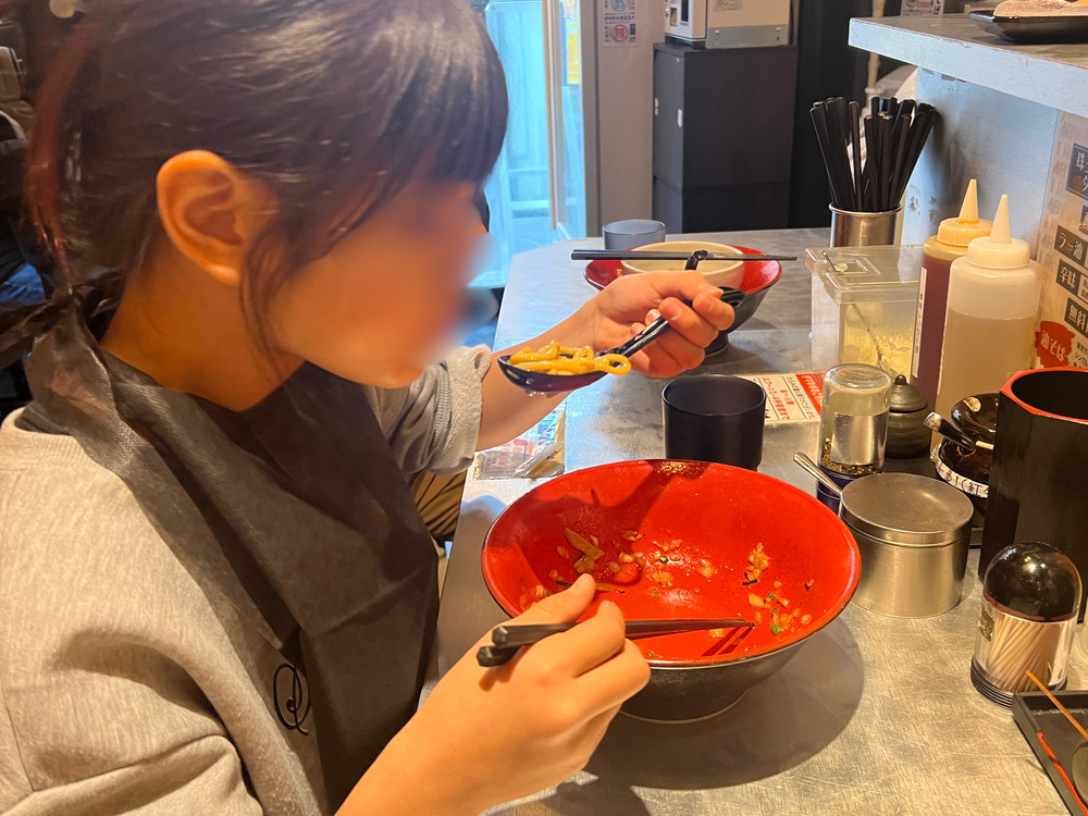 季節の油そばもおいしいので、いつも悩んでしまうのですが……私は今回、辛油そばにしました。