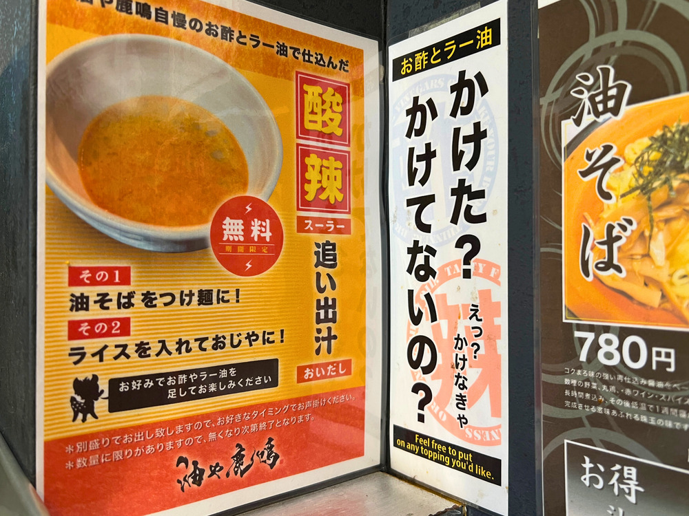 自分好みのオリジナル油そばを探求するもよし、店主とジャパメタや駅伝への熱い思いを語ってみたい方にもおすすめですよ。
