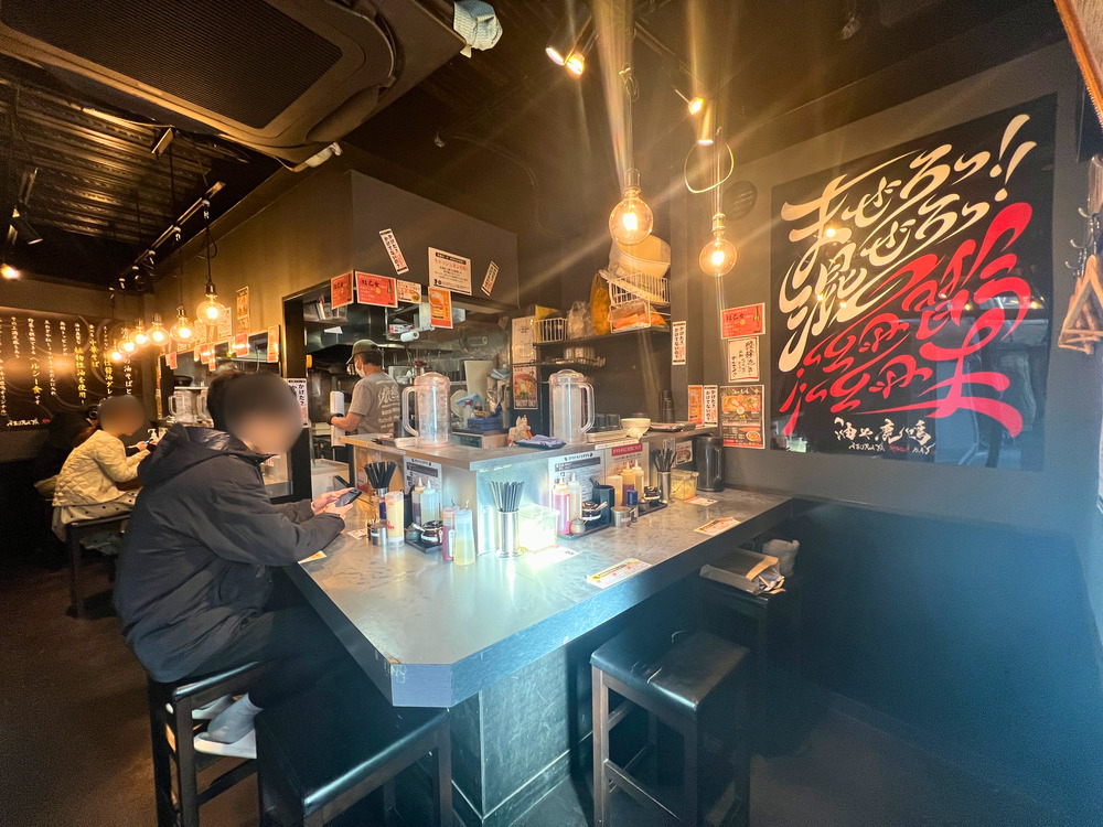 店内に入ると、これまた黒が基調の壁とL字のカウンター席が10席。