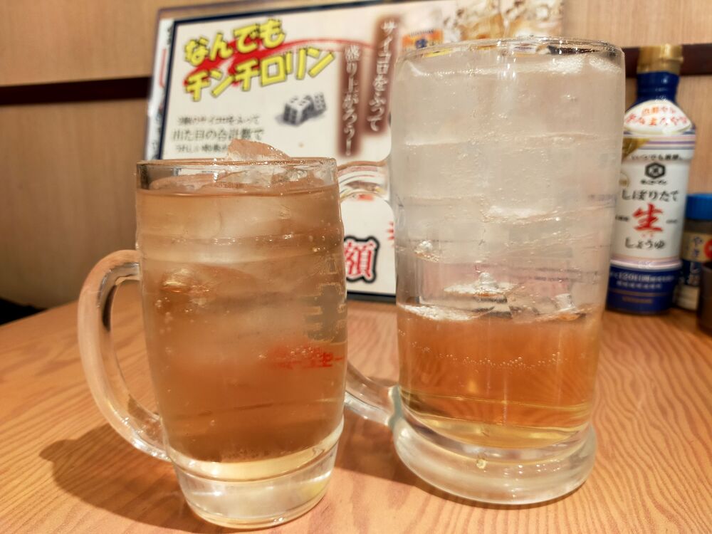 そして私はなんと1杯目半額です。ありがたい!と楽しくなって挑んだ2回目はメガサイズでした(笑)。引きが強い二人です。これは盛り上がります。