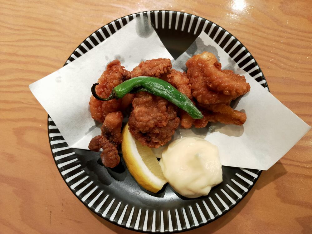 たこの唐揚げは、しっかり味の付いた衣はカラッと揚がっていて、中のタコはぷりぷりっとした食感。炭酸飲料がとても合います。
