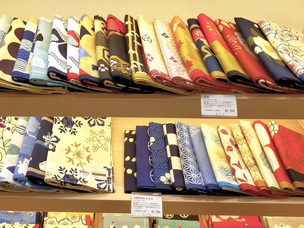 ふろしきも種類が豊富で、和の美しさが感じられる柄が並んでいました。