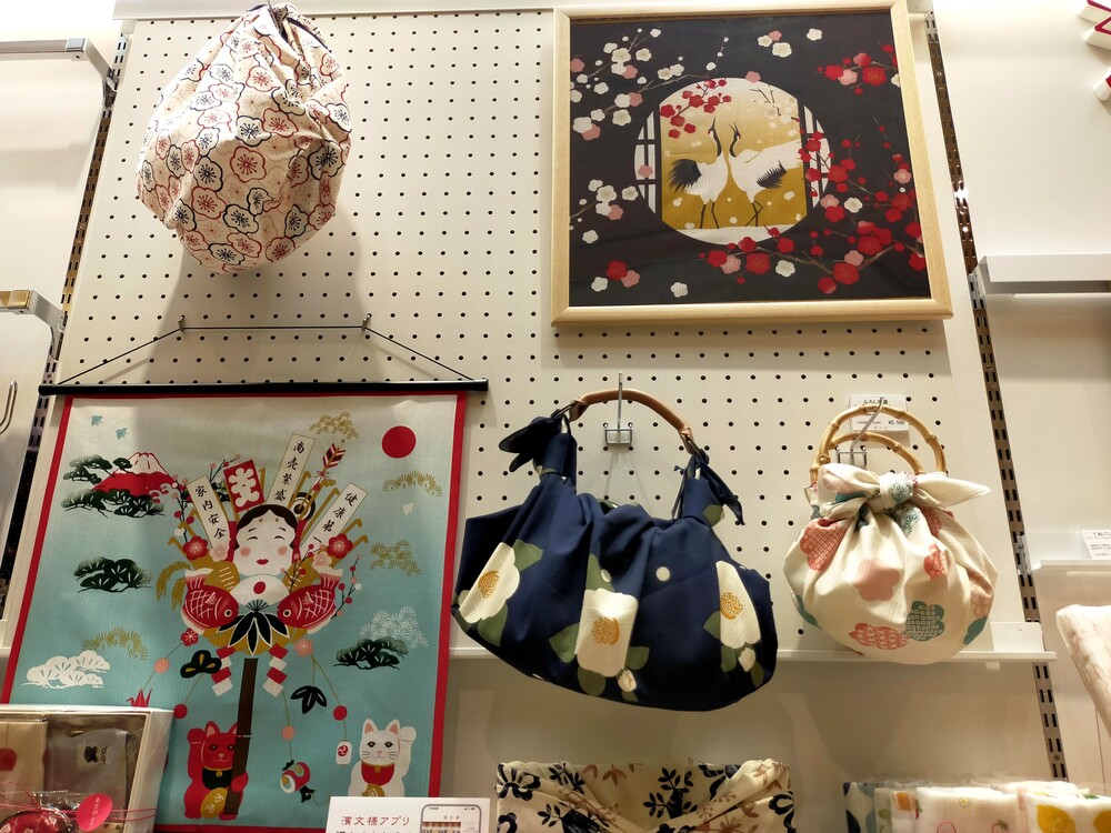 お店の方によると、ふろしきをバッグに仕立てたり、額に入れ壁飾りにする方も多いそうです。確かにデザインが絵画でインテリアとしても映えます。