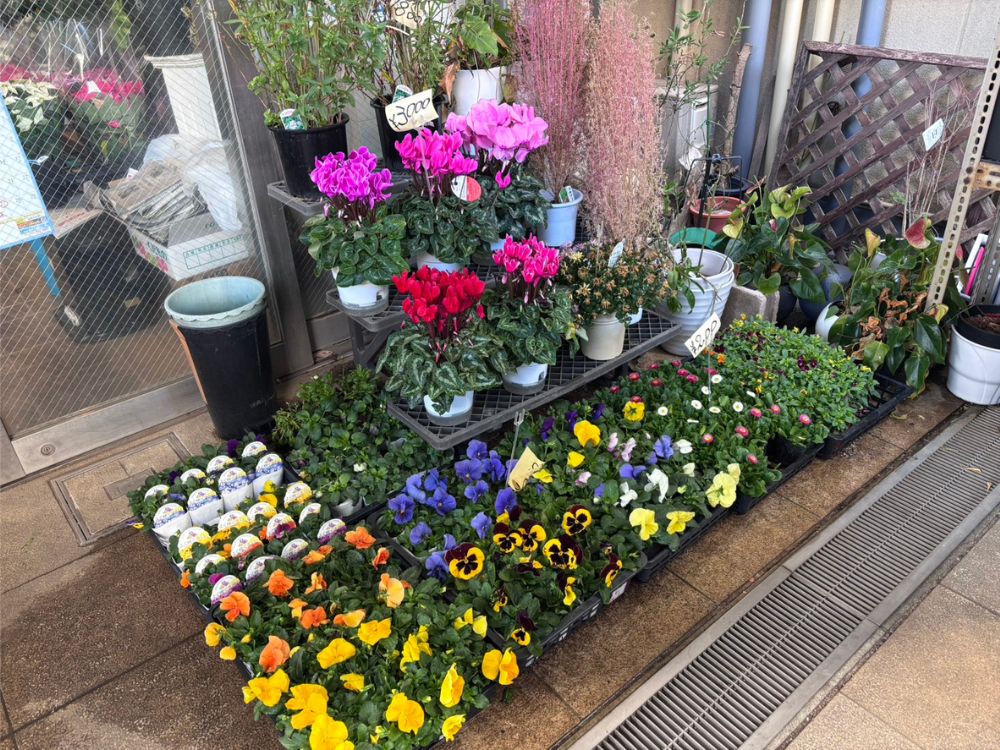 お店の外にはお花の苗が並んでいます。