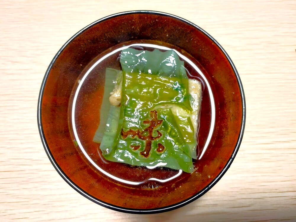 次に「ゆばに包んだお味噌汁」。お湯を注ぐと湯葉が透き通っていく様子になぜか感動しました(笑)。