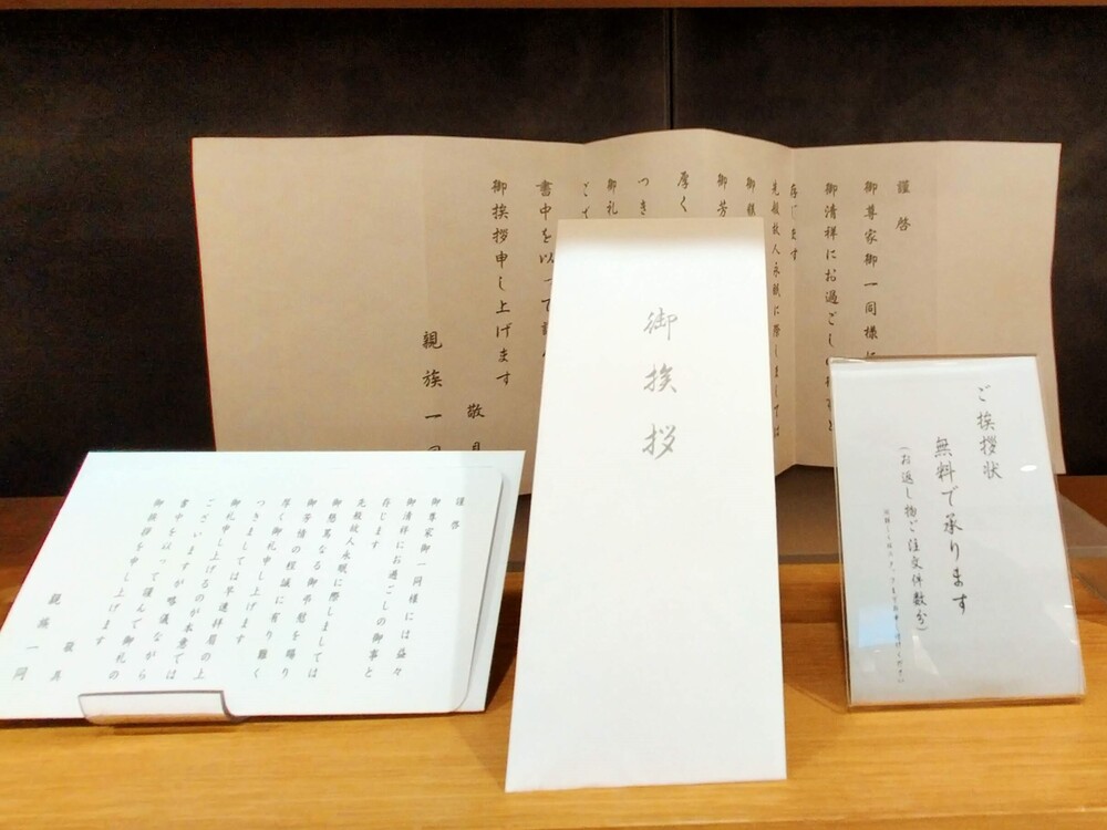 担当者の方が話してくださった他にはない魅力のひとつが、香典返しを注文する際のお礼状サービス。