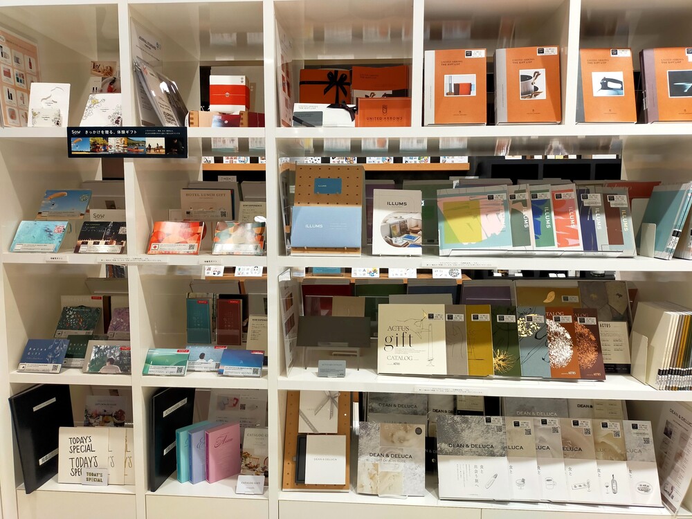 なかでも人気は、総合型の「Best Collection」。グルメも雑貨もバランス良くのっていて、幅広い世代に喜ばれると評判とのことでした。最近はコンパクトなカード型を選ぶ方が増えているそうで、手土産感覚で渡せる気軽さも魅力です。
