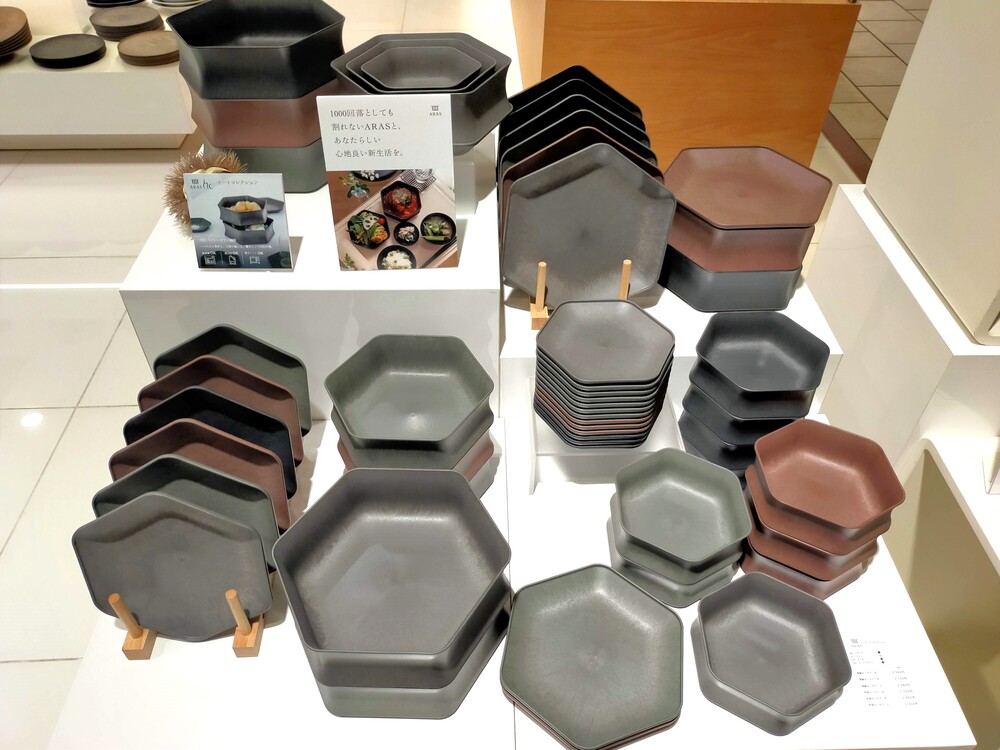 まず目に留まったのが、店頭にずらりと並ぶ「ARAS(エイラス)」の食器でした。