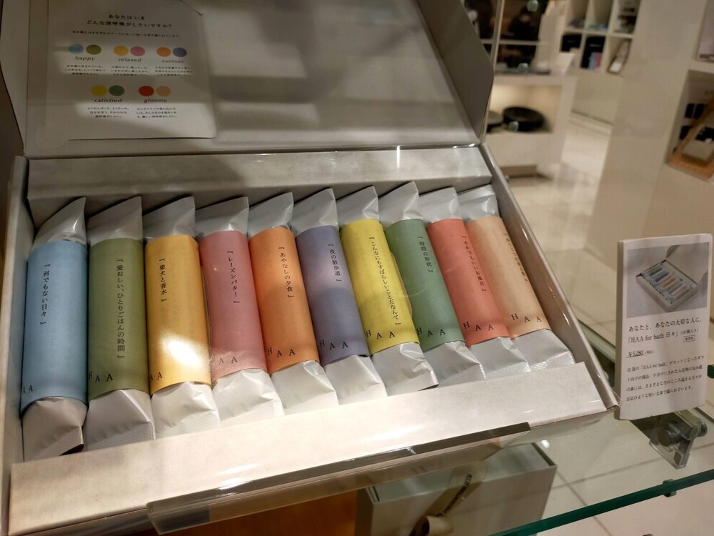 個人的に心惹かれたものは、入浴剤のHAA for bath 日々のセットです。1本ずつにエッセイが書かれていて、開けた人だけが読める“秘密の楽しみ”が仕込まれているんです。