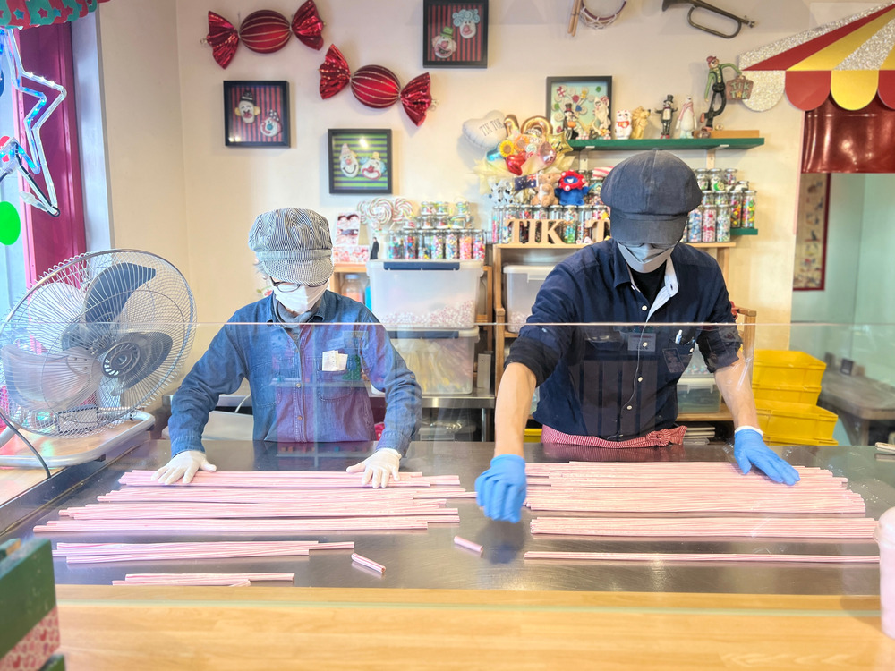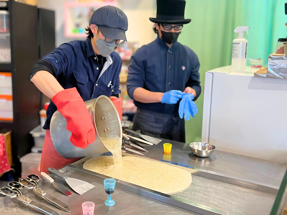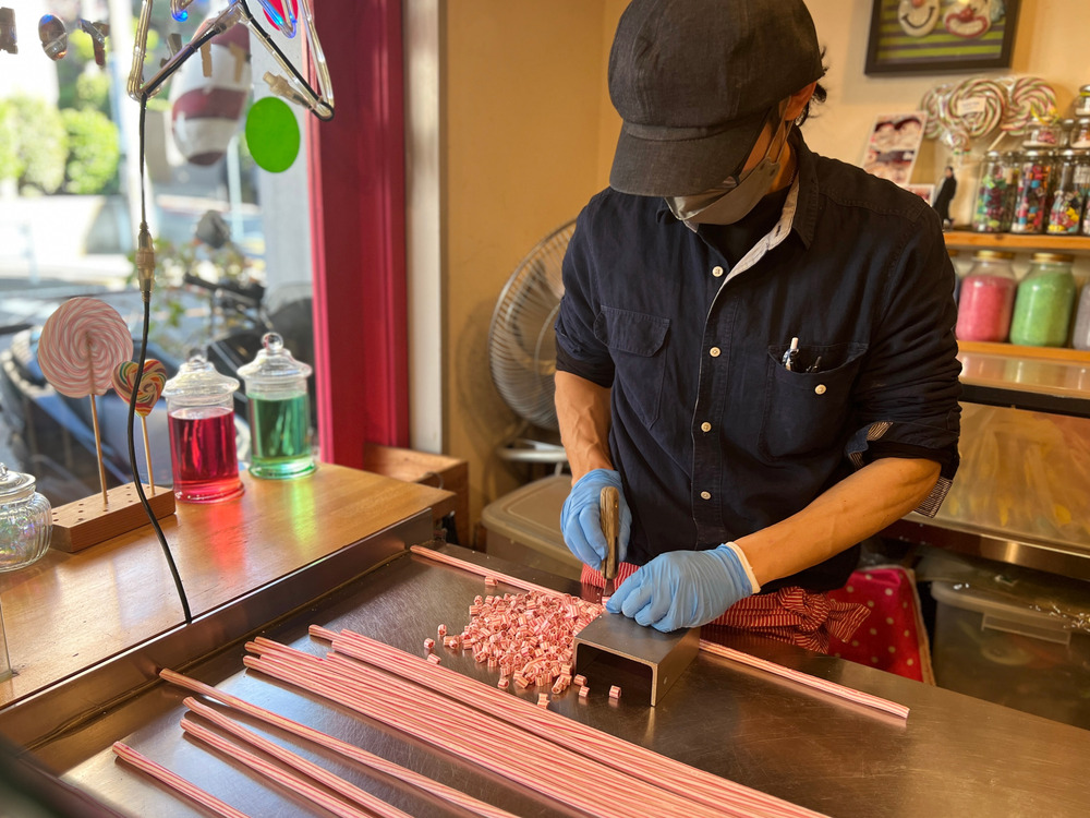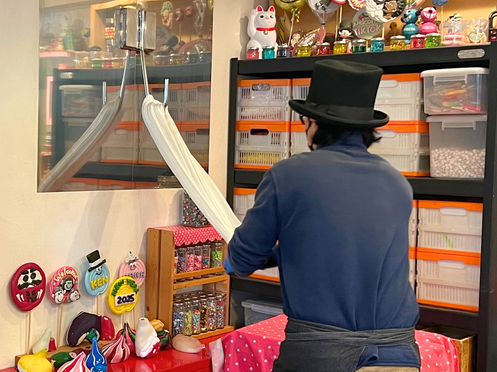 店内のオープンキッチンでは、毎日キャンディーを手作りしているので、タイミングが合えばキャンディー作りを間近で見られちゃいますよ!