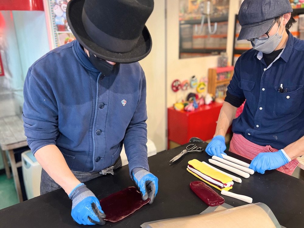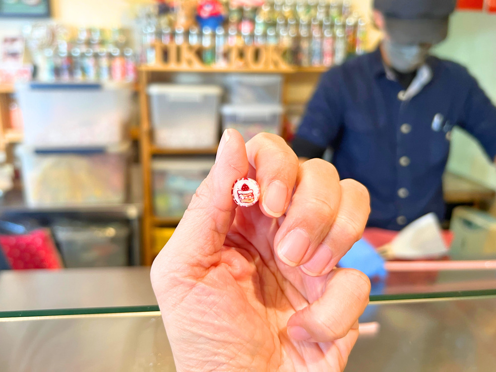 出来たての「ショートケーキ」柄キャンディーを味見させていただくと、まだほんのり温かく、口に入れた瞬間に甘い香りといちごの風味がふわっと広がって、まさに幸せな味。