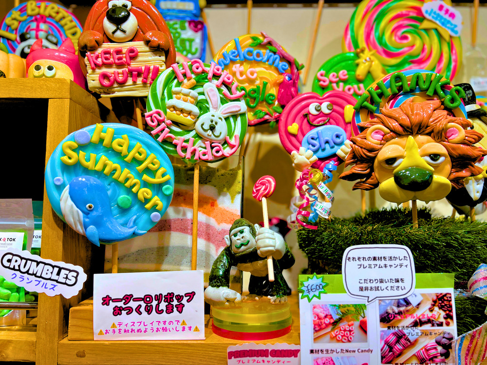店内に一歩足を踏み入れると、カラフルなキャンディーがずらりと並び、まるで小さなテーマパークみたいにワクワクする空間が広がります!