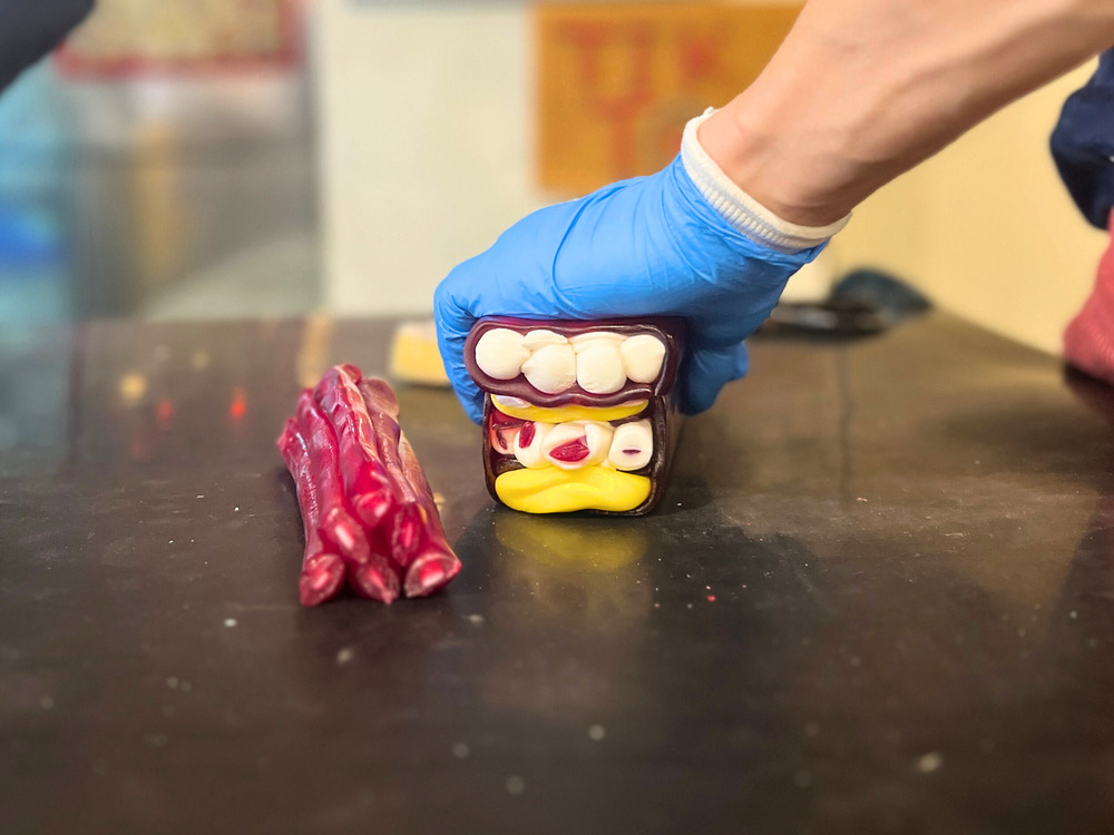 キャンディーの絵柄は、どんなに細くなっても、顕微鏡で見るとしっかりと残っているそう。