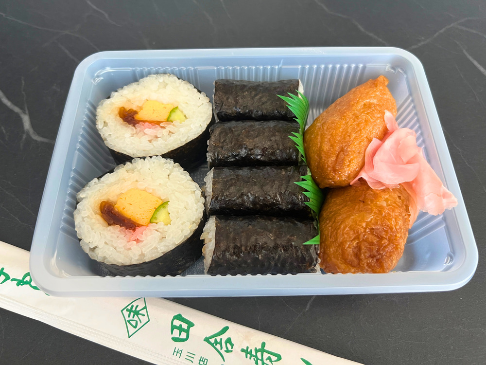 大・小があり、どちらも【太巻き】【細巻き】【いなり寿司】がぎっしり詰まっています。