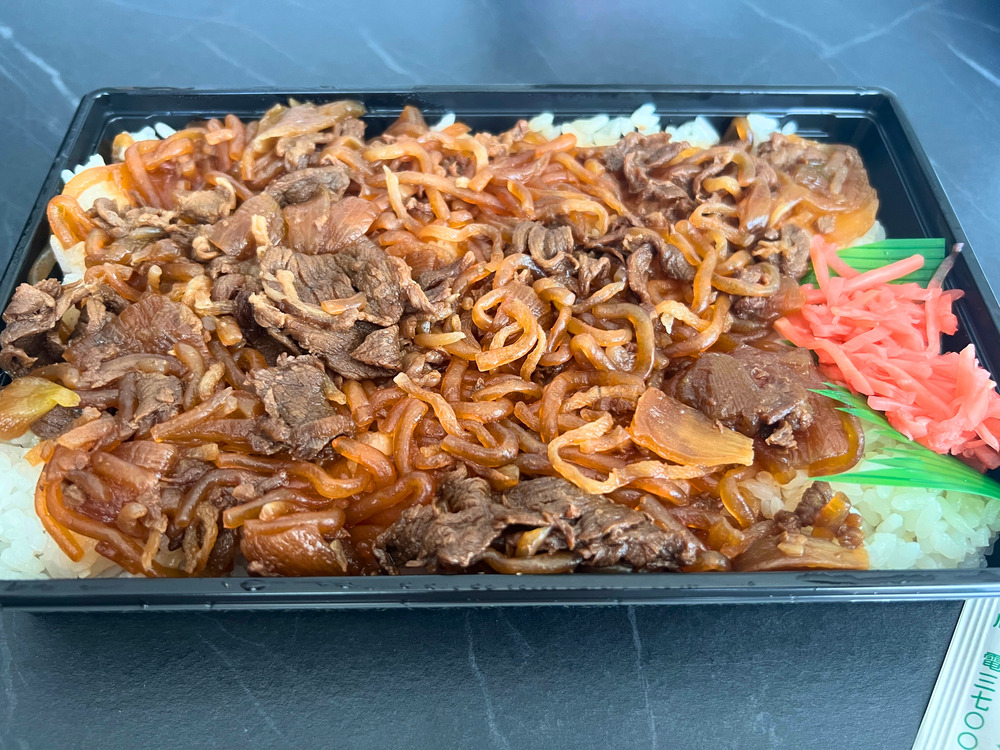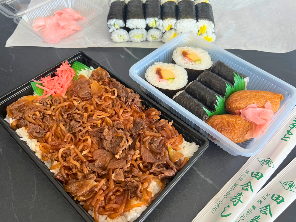 牛丼とすし詰め合わせ(小)のり巻き2種類を購入